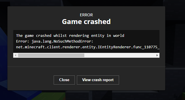 Everytime I start my world the game instantly crashes, saying it's some rendering issue about a slime entity.