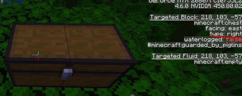 When looking at a double chest. The left chest type is "right" and the right chest type is "left". This affects both 1.15.2 and 1.16. See the attached images.